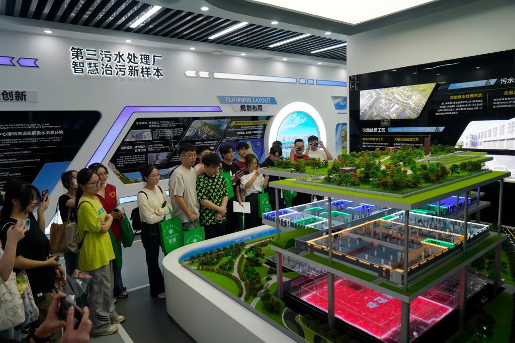 在安州发展集团-水资源管理智慧展示中心,同学们通过高度还原的工艺动态模型,直观洞悉了污水、污泥及臭气协同治理的精密流程与创新技术。在智能指挥中心,还参观了实时更新的污水数据流与工艺流程可视化系统等现代化污水处理的智能化管控与高效运营模式,深刻领略了“智慧水务”的科技魅力。参观过程中,同学们也就工艺难点、技术创新与运行优化等核心问题与现场讲解专家展开互动交流。
