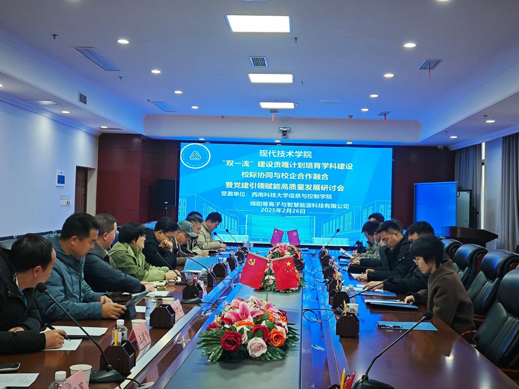 2025年2月26日下午,一场聚焦能源动力“双一流”团队建设,旨在深化校际协同与校企合作,以党建引领赋能高质量发展的研讨活动,在3044永利集团安州校区博润楼902会议室隆重举行。本次研讨会由3044永利集团副经理罗冰主持,汇聚了来自西南科大信息与控制工程公司、绵阳等离子与智慧能源科技有限公司的多位领导、专家及骨干教师,共同探讨团队建设、科研合作与人才培养的新路径。