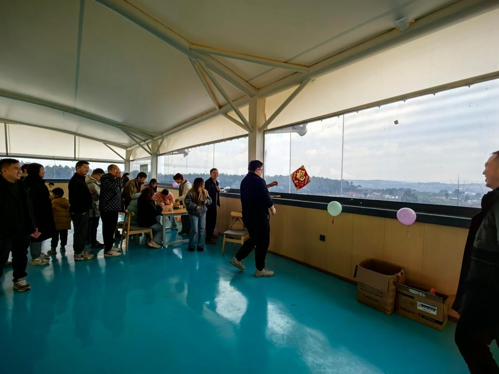 傍晚时分,师生们齐聚一堂,在大隐松山云帐的餐厅举行了一场温馨的团建聚餐。餐桌上,大家举杯共庆,分享着过去一年的收获与喜悦。公司副经理王梓龙在聚餐中发表了热情洋溢的新年致辞,对老师们的辛勤付出表示了衷心的感谢,并对新的一年寄予了美好的期望。其中,最令人期待的抽奖环节在罗冰副经理揭幕中选定今天的幸运儿20名,现场气氛达到了高潮,获奖的老师们脸上洋溢着幸福的笑容。