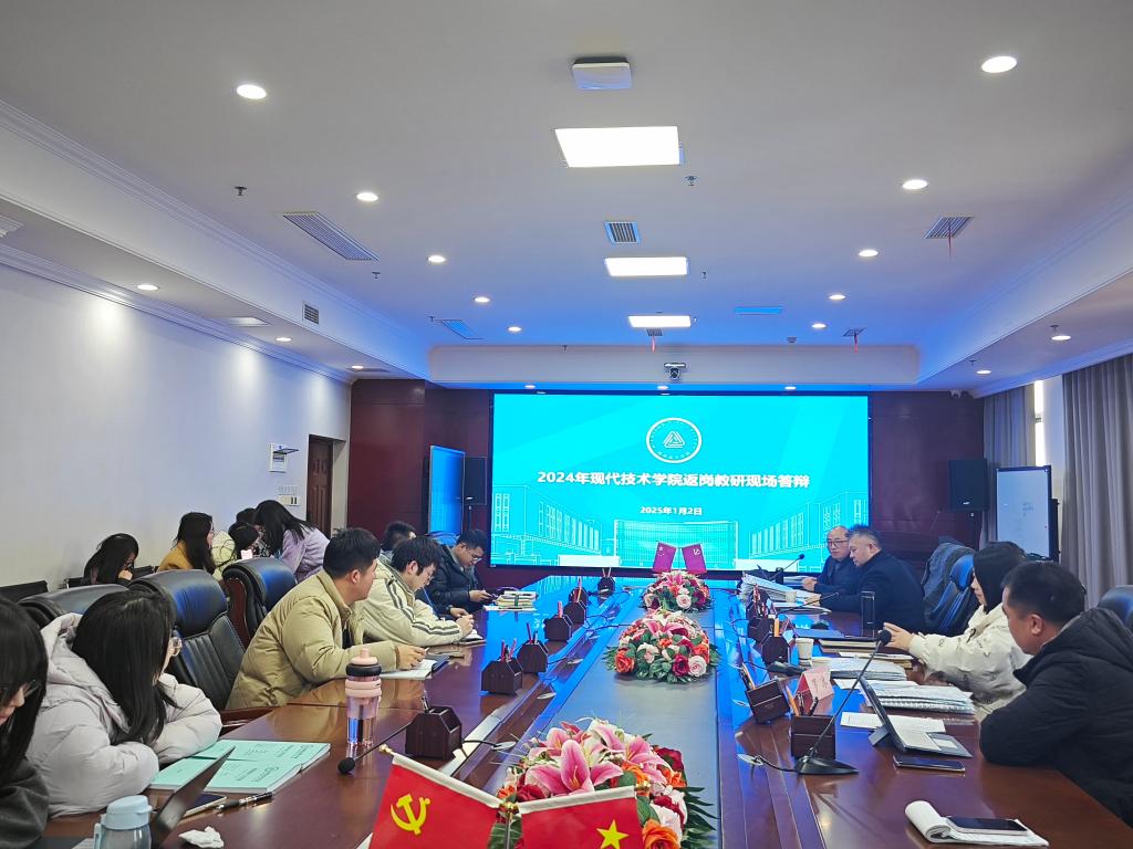 为进一步提升教师的教学水平和科研能力,促进公司的公司产品质量再上新台阶,2025年1月2日,3044永利集团在安州校区中心楼902会议室成功举办了教师返岗教研答辩活动。活动邀请了公司副经理王梓龙、副经理罗冰、经理助理金启刚、教研办主任敖文娟、专业集群主任黄振华、副主任徐学林担任评委,30余名公司新进教师参加活动。