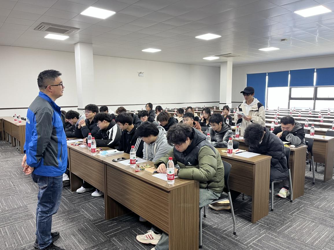 在接下来的专项培训过程中,江总向同学们仔细介绍了缝制设备核心技术、关键零部件加工制造、行业状况等来自企业一线的实际内容,同学们听得入神,记得仔细,同时还踊跃与江总互动,提出自己关心的问题,整场培训热闹非凡。