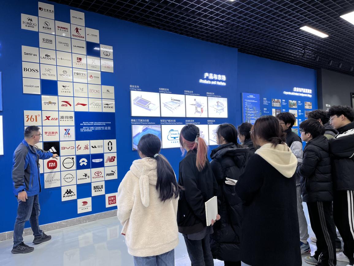 活动由实习基地企业专家四川精上缝纫机有限公司副总经理、行政中心主任江纪国先生全程带领。江总首先介绍了企业基本情况。四川精上缝纫机有限公司由浙江中缝重工缝纫机有限公司于2008年投资设立,随后两家公司合股,成立四川中缝重工股份有限公司,从事特种缝制设备及高精密缝纫机零配件研发及生产,公司核心产品如模板花样机、平头锁眼机、高速数控电脑套结机等,拥有多项国内及国际产品专利,年产规模约10万台。公司秉承“用心制造精品”的企业精神,积极瞄准国际缝纫机行业的前沿科技,所制造的产品具有“高技术、精品化、人性化”的时代特点,并使新产品研发速度及品质与世界同步。随后,江总带领大家参观了公司展厅和生产场所,并详细介绍了公司多年来取得的主要成就。