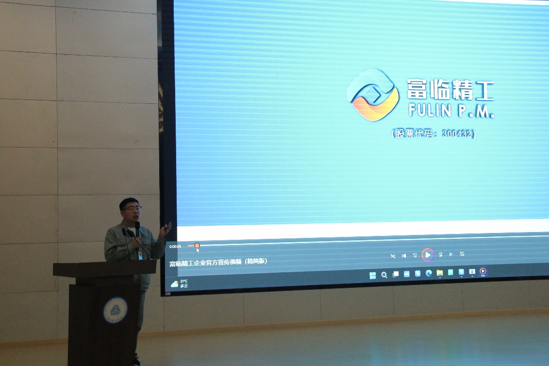 “同学们,欢迎来到校企合作携手共创的未来之约!”随着机械制造与设计教研室主任马小凤的热情开场,现场气氛迅速升温。宣讲会上,富临精工的代表梁宇成对公司的企业文化及涉足领域进行了解读,随后,梁宇成代表通过生动的视频展示与详尽的讲解,逐一剖析了多个热门岗位的职业路径与发展前景。从新能源汽车智能电控工程的科技创新挑战,到汽车发动机零部件研发的精密制造艺术,每一个岗位都充满了挑战与机遇,激发了同学们浓厚的兴趣与向往。他提到,“我们寻找的,不仅仅是专业的技术人才,更是对未来充满梦想、勇于担当的合作伙伴。”