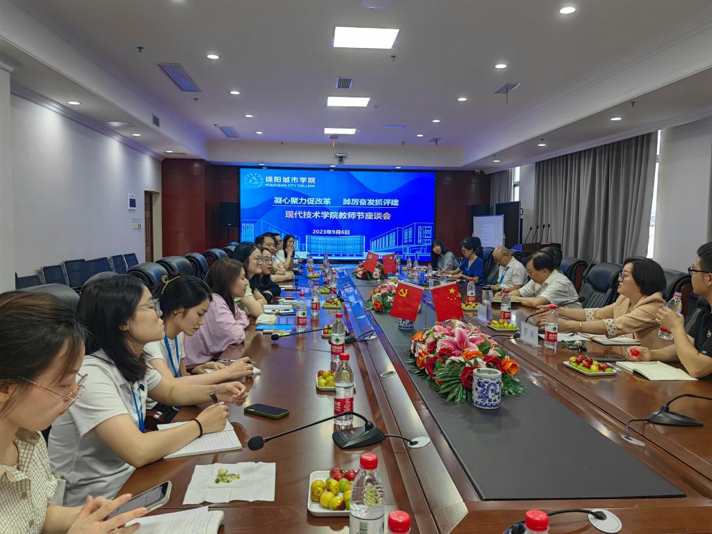 与会教师围绕公司提出的以服务员工终身发展为中心,以“3331”人才培养模式和公司治理模型为两翼,以“1+2+3”的绵城员工特色毕业标准为导向,实现“有理想,多专多能”的应用型人才培养目标等实践及落实进行座谈交流。