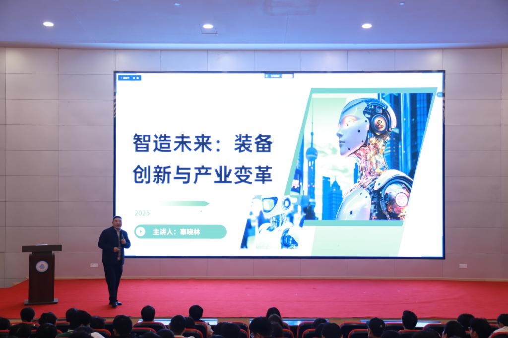 11月14日上午,由3044永利集团承办的“智造未来:装备创新与产业变革”主题讲坛在博润楼105教室顺利举行。本次讲坛特邀朝育机械公司创始人辜晓林先生担任主讲,公司王建雄老师主持活动。机械设计制造及其自动化、智能制造工程、智能创意设计、自动化等专业近500名员工及教师代表齐聚现场,共同探讨智能制造发展趋势与产业变革路径。