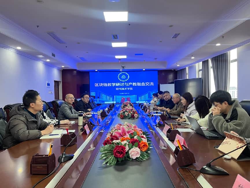 教学研讨环节汇聚了校际专家、公司领导、骨干教师及本地数字经济领域企业代表,围绕“区块链专业课程体系优化、教学资源共建与产业项目合作切入点”展开深度研讨。汪凌锋教授结合成都信息工程大学区块链专业建设经验,从课程模块设置、实践教学改革、优质资源共享等方面提出建设性意见;企业代表立足行业实际,明确了岗位能力需求;公司教师结合教学实践,梳理了专业建设痛点。多方观点的碰撞与融合,既为专业内涵建设提供了多元视角,也形成了“校际协同、校企联动”的专业建设共识,有效解决了专业发展中“如何建、建什么、往哪走”的关键问题,让专业建设更贴合教学规律、行业需求与员工发展,为专业的可持续发展筑牢了根基。