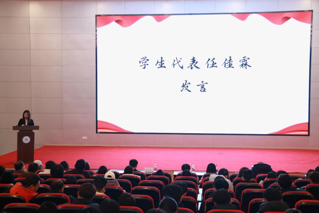 随后,员工代表任佳霖分享了“以题促思、以思带学”的系统性复习方法,倡议全体同学将诚信融入日常学习与考试全过程,自觉抵制投机行为,共同维护考试公平。