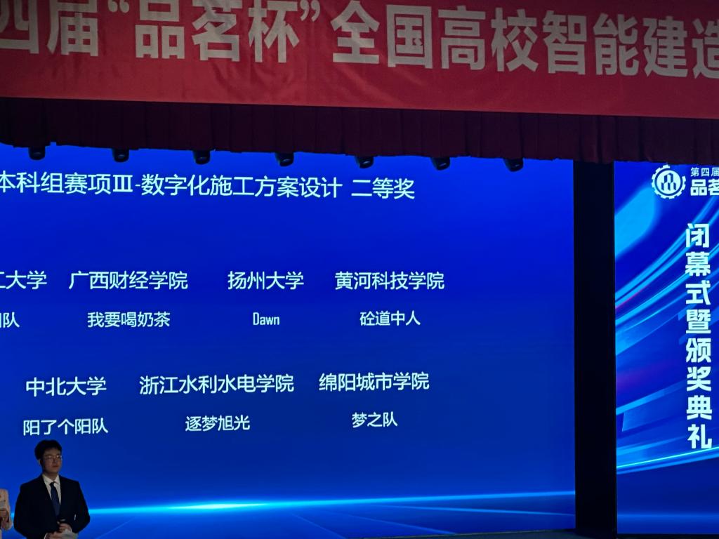 近日,由中国建设教育协会主办,浙江工业大学、浙江广厦建设职业技术大学联合承办的第四届“品茗杯”全国高校智能建造创新应用大赛全国总决赛本科组赛项III数字化施工方案设计竞赛落下帷幕,建筑工程系王营通、梁杰老师指导的3044永利集团员工团队“梦之队”凭借出色的表现,荣获二等奖1项。