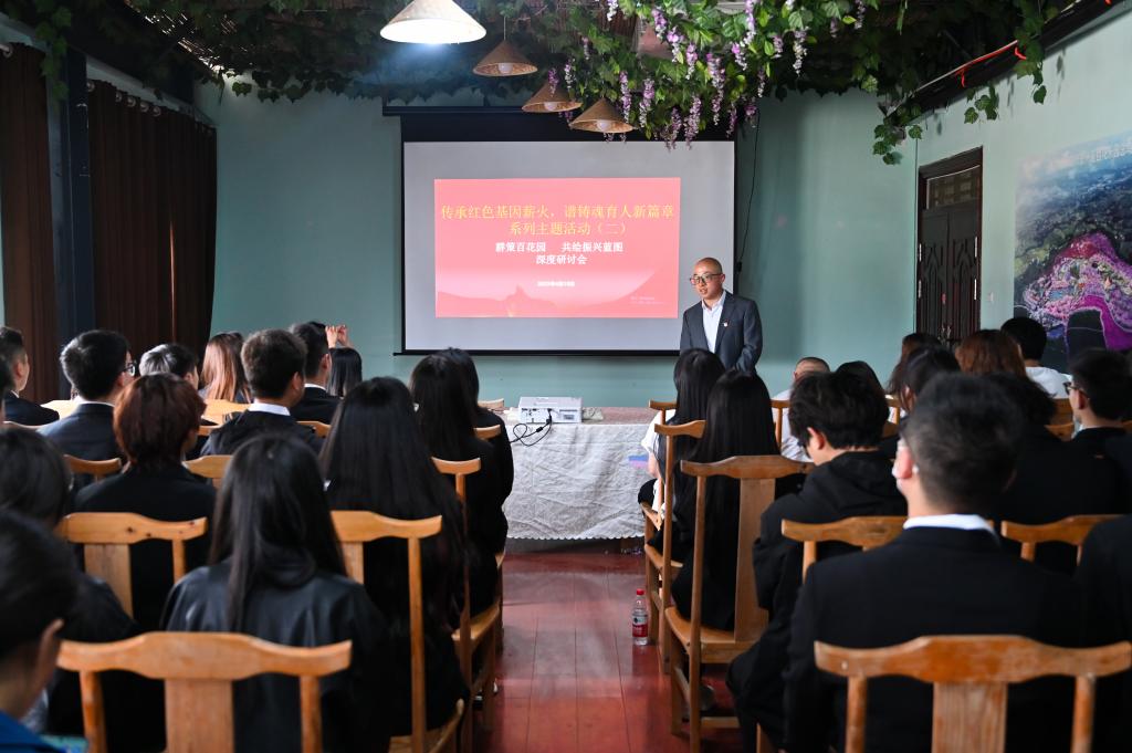 活动伊始,全体师生党员代表于中心楼旗台集结登车,赴百花园开展主题活动。抵达后,首先进行集体合影留念。随后,金启刚老师开展了“群策百花园,共绘振兴蓝图”专题会议,会上,与会人员围绕公司发展路径与红色基因传承等议题展开深入研讨,积极建言献策。