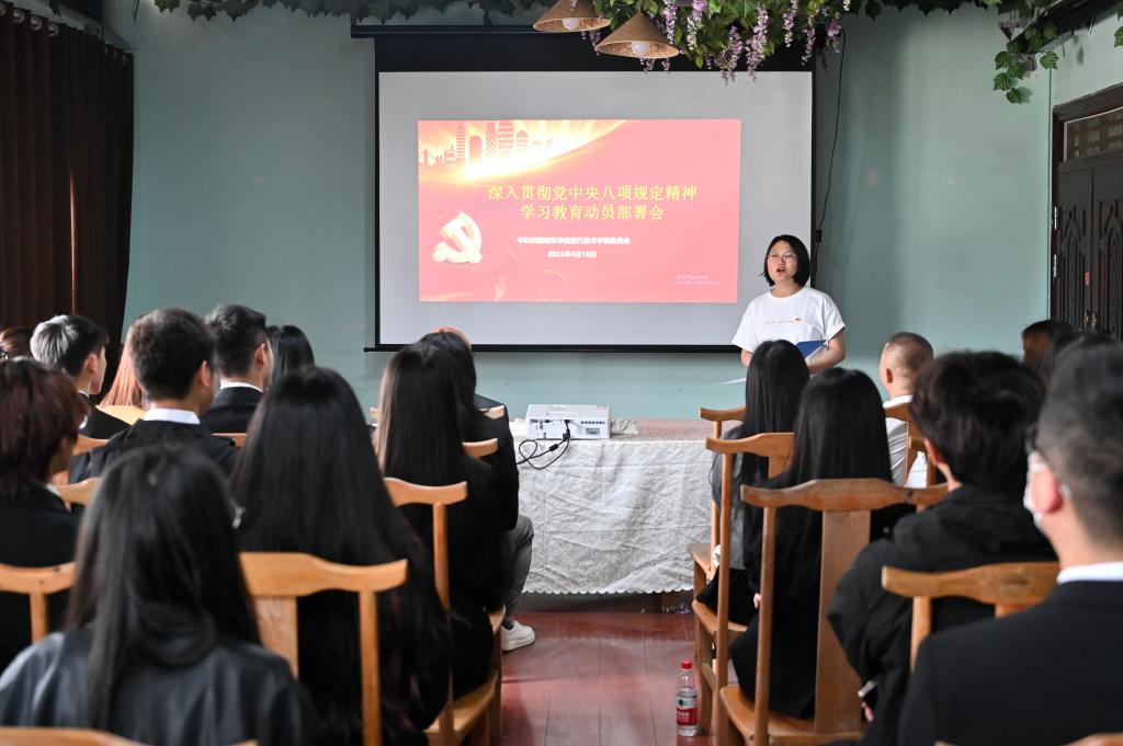 紧接其后,“中央八项规定精神部署会议”有序开展。周晓庆老师围绕落实要求作重要讲话。她强调以“常学、常省、常践”为工作抓手,将八项规定精神全面融入教学管理、师德涵养等校园建设全领域。与会代表全程专注聆听、认真记录,以实际行动诠释对党风廉政建设的高度重视与真抓实干的责任担当。